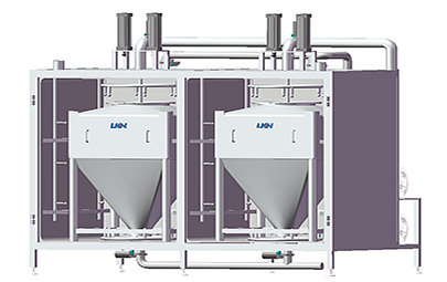 優(yōu)康恩自動(dòng)化料系統(tǒng)用于對粉料和其它配料進(jìn)行乳化和水化的混料系統(tǒng)設(shè)備。其中真空混料機(jī)可在密閉真空容器下進(jìn)行高速剪切乳化混合綜合產(chǎn)品、各種粉末和液體等,每小時(shí)化粉量可達(dá)到3T-5T。優(yōu)康恩自動(dòng)化料系統(tǒng)可利用真空作用將配料輸送到化料設(shè)備中,省去了操作工承擔(dān)這項(xiàng)繁重工作的需要。